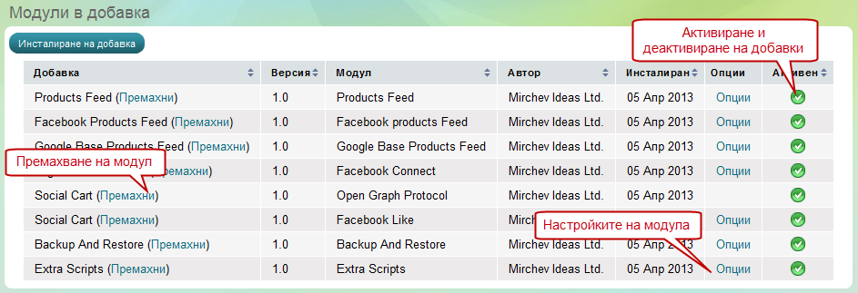 Съвет: Силно препоръчително е, преди да инсталирате дадена добавка, да проверите в списъка дали тя вече не е инсталирана.