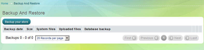 За да направите backup на магазина си, натиснете линка Backup your store. Пред Вас ще се отвори следният екран: