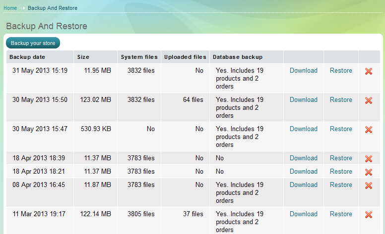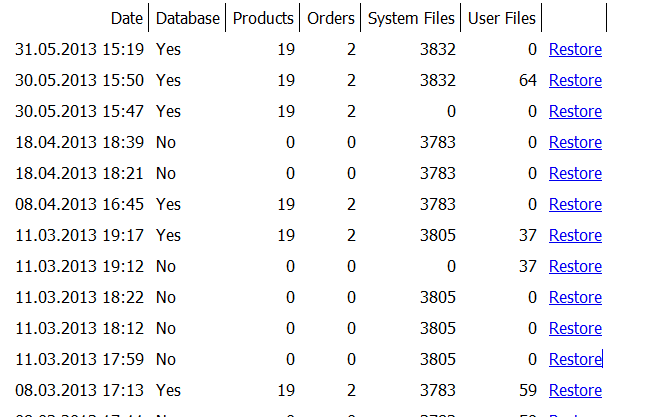 Важно е да отбележим, че всички промени, които сте направили по магазина след момента на създаване на архива, ще бъдат изгубени при възстанвояването му.