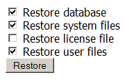 Ако по някаква причина се е случила загуба или промяна на информация, по време на работата Ви с магазина или по друга причина, можете да възстановите запазените в backup архива данни, натискайки Restore. Пред Вас ще се отвори следният екран: