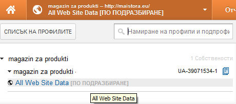 - отидете в профила си в Google Analytics и изберете профила, за който искате да разглеждате статисткити;