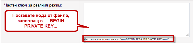Важно: Когато отворите файла, уверете се че копирате съдържанието започващо с текста "-----BEGIN PRIVATE KEY-----" включително и завършващо с текста "-----END PRIVATE KEY-----".