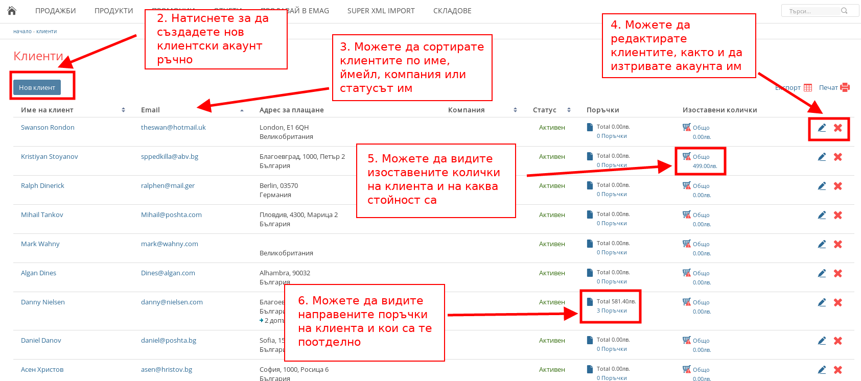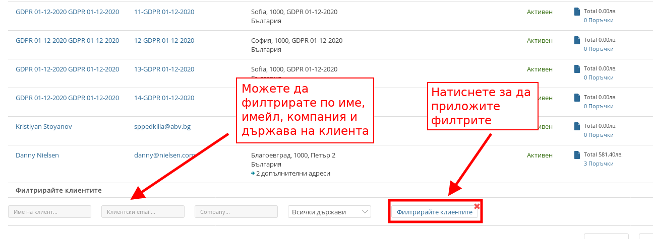 - С бутона “Нов клиент” можете ръчно да създадете нов клиентски акаунт във Вашия онлайн магазин.