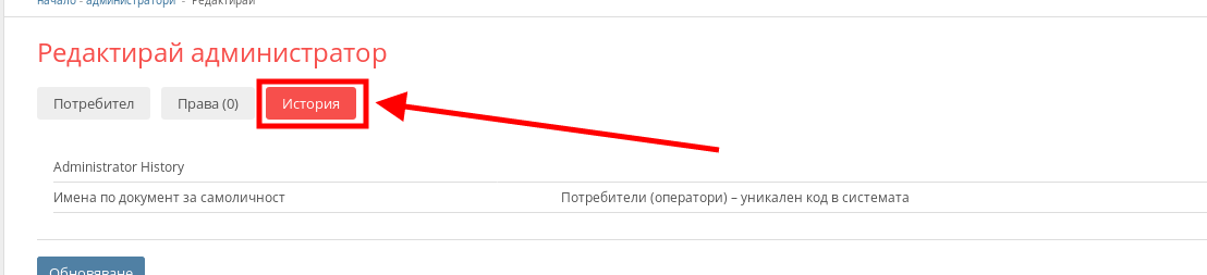 - Ако влезнете във вече създаден администраторски профил, от подменю “История” ще можете да видите всички промени, които той е правил по магазина.