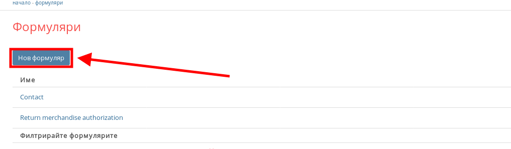 - За да създадете нов формуляр натиснете бутона “Нов формуляр”.