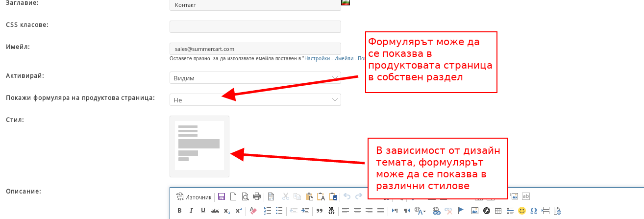 Можете да използвате формулярите във Вашия магазин за да създадете формуляр за контакт, с които клиентите да Ви изпращат запитвания, както и за други цели, за които бихте искали клиентите да се свържат с Вас.