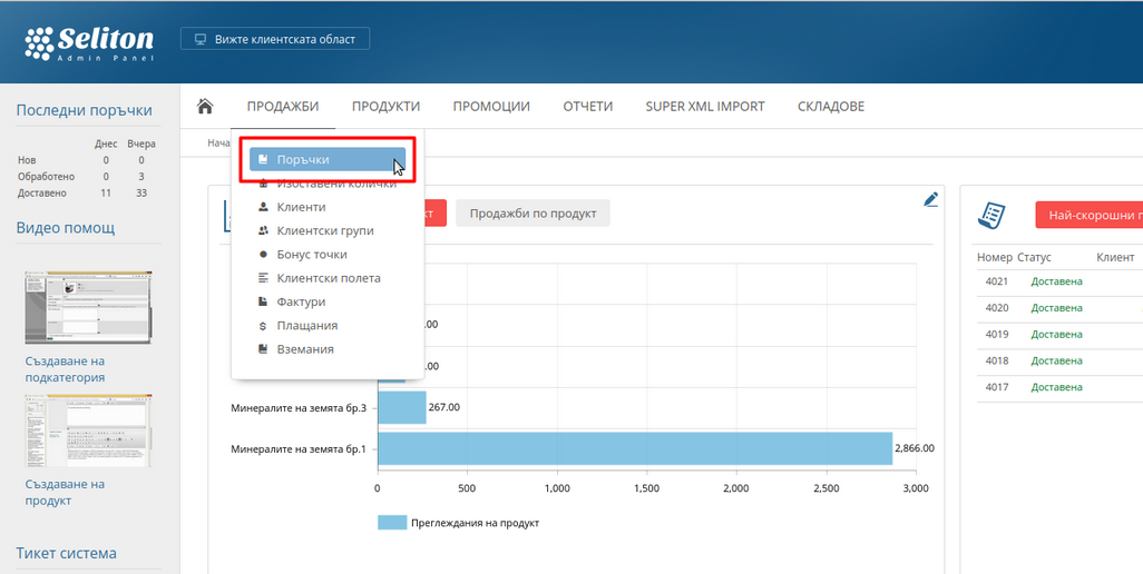 1. Отидете в меню Продажби >> Поръчки.