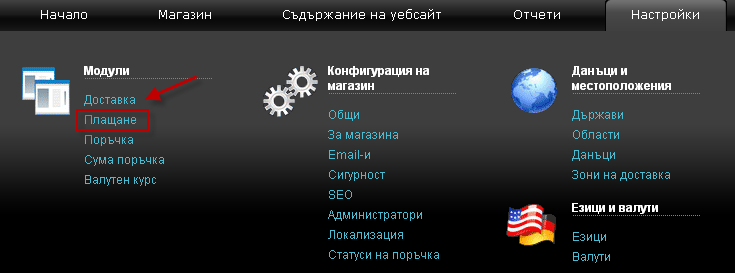 - Отидете в меню Настройки -> Плащане.