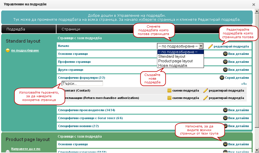 подредбата, която ползват. Изберете страница и кликнете на "редактирай