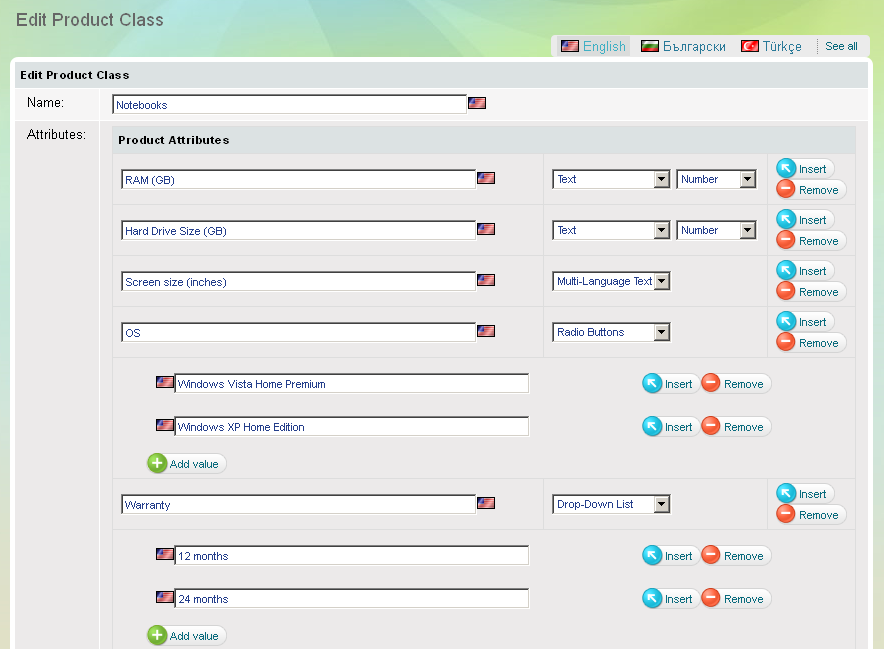 Classes de produits et attributs de produit