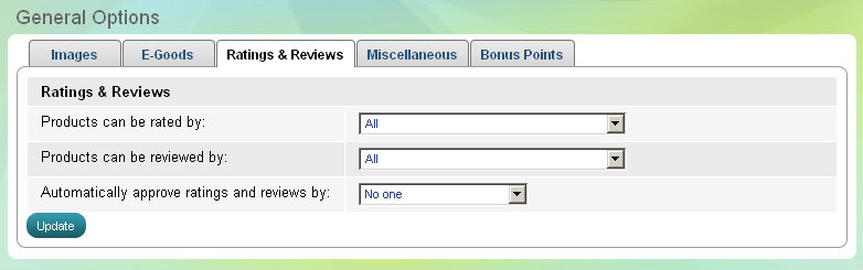 Définir qui est autorisé à évaluer et examiner les produits dans votre boutique en ligne: tous les visiteurs, les clients inscrits uniquement, seuls les clients qui ont acheté ce produit, ou personne. Aussi, vous pouvez définir si vous voulez approuver automatiquement les avis.
