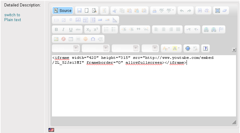 Éditer le produit. Vous devez passer à l'éditeur WYSIWYG "Source" mode.