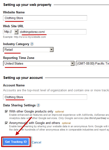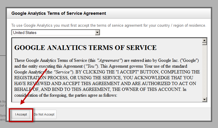 Click “Get tracking ID”. A window with the Google Agreement is