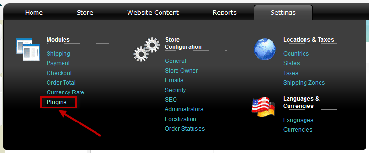 From the menu you hover your mouse at Settings and then click on “Plugins”