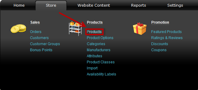 1. Go to Store - Products