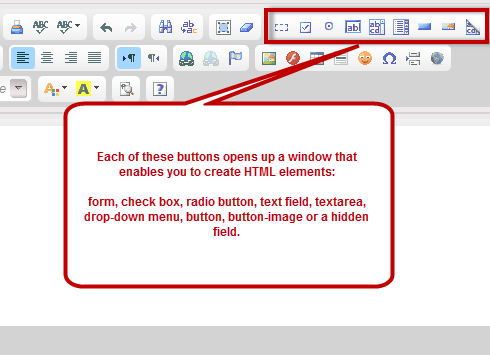 Each of the buttons from the following group opens up a window that enables you to create HTML elements: