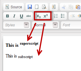 Subscript - mark a word or a digit and click this button in order to place it slightly below the text before it