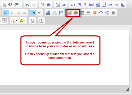 Flash - opens up a window that lets you insert a flash animation.