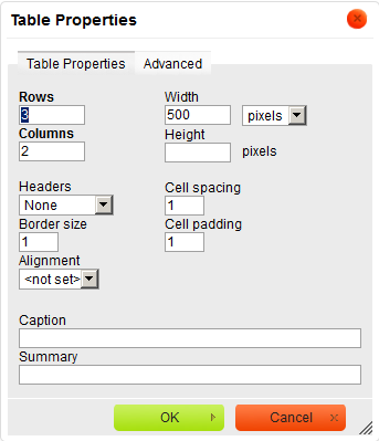 Insert table window