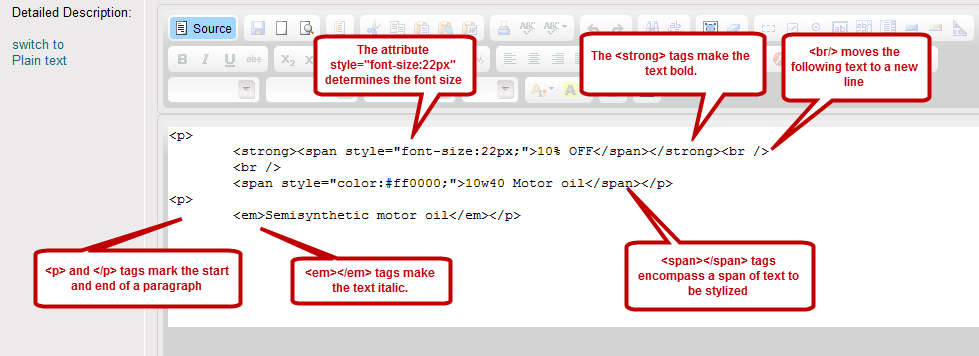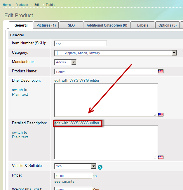 3. You can use the WYSIWYG editor to enter brief or detailed product description, so click one of the options