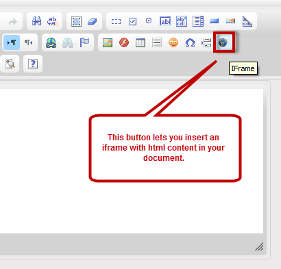 Iframe - lets you insert an iframe in your document