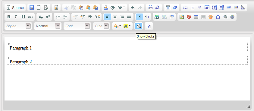 Show blocks - this button shows the html blocks in the content