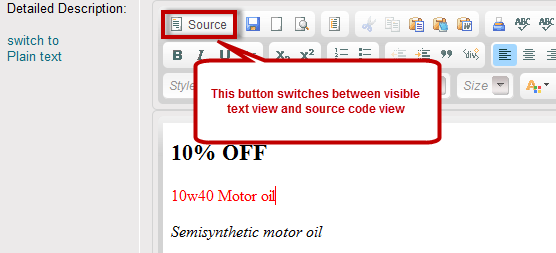 Source - this button switches between visible text view and source code view
