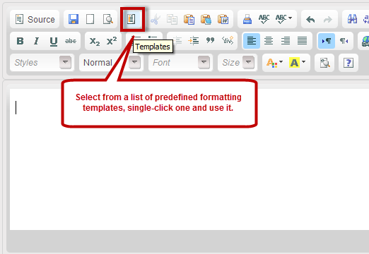 Click the button and a templates window will open up. Click the template you've chosen once and it will be inserted in the text area, ready to be used.