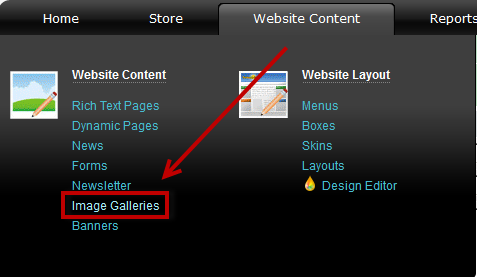 2. Go to "Website content" - "Website content" and click on "Image Galleries"