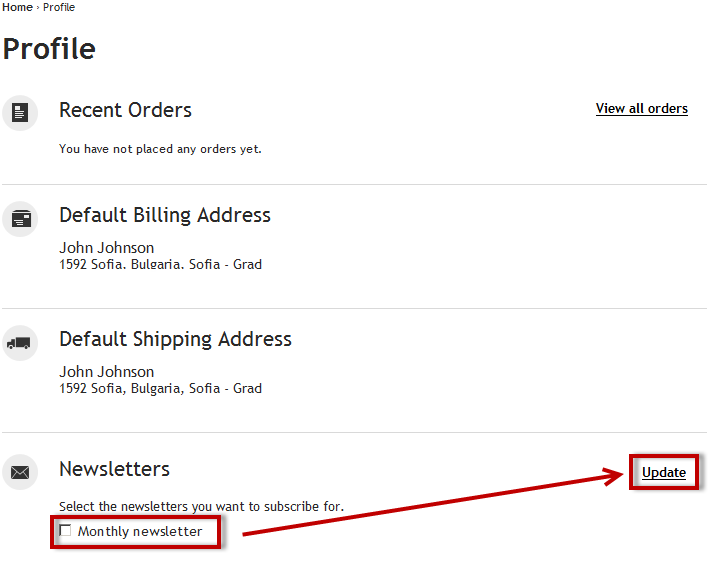 - they can subscribe to a newsletter at a later time, by entering their profile;