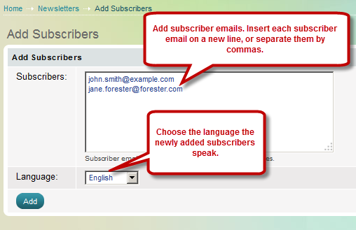 Adding subscribers to a newsletter