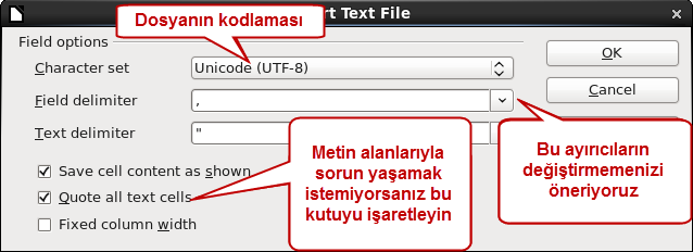 3. Açılır menüden „Text CSV (.csv)“ seçınız.