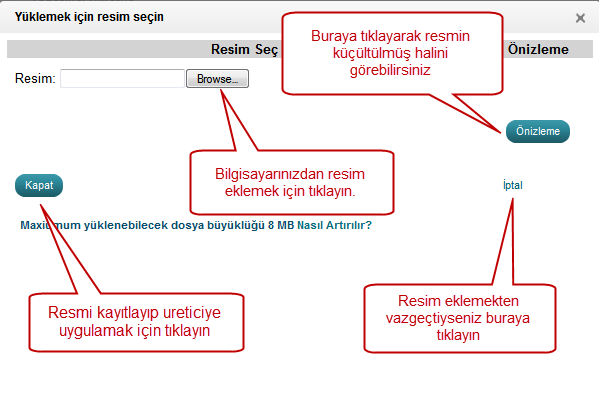 Browse butonuna tıklayarak bilgisayarınızdan resim seçın. "Önizleme" butonuna tıklayarak resmin kuçültülmüş halını oluşturup nasıl resim yüklediğinizi görebilirsiniz.