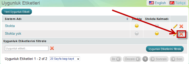 Etiket silmek için sadece silme ikonuna tıklamanız yeterli.