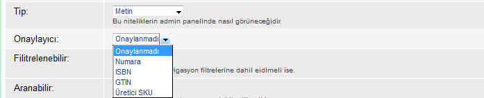 Bu alanların ardından niteliklerin özü geliyor. Özelliklerin tipi, nasıl seçenekler içerecekler, filtrelenebilecekler mi, aranabilecekler mi, tüm ürünlere mi uygulanacaklar ve bilgiler nasıl görüntüleneceği gibi bir çok seçenek mevcut.