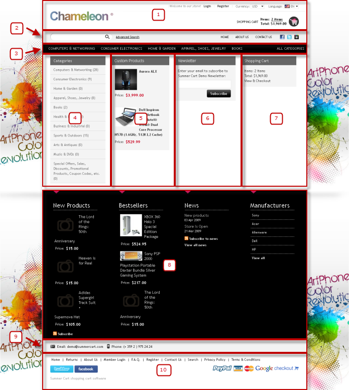 Summner Cart'ın admin panelinde güçlü, ama basit bir tasarım editörü bulunmakta. Onun yadımıyla mağazanızın tasarımını istediğiniz şekilde değiştirme özgürlüğüne sahipsiniz.