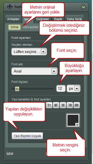 Buradan mağazanızdaki metinlerin stilini seçebilirsiniz.