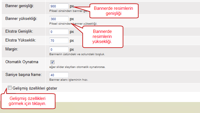 Otomatik Oynatma - eğer bu kutuyu işaretli ise bannerdeki resimler otomatik olarak değişecektir.