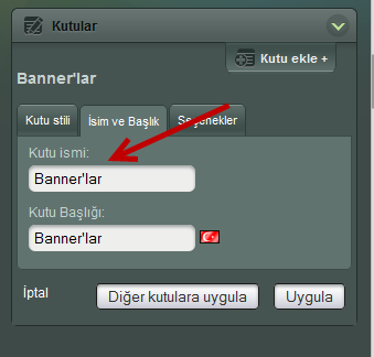 Yaptığınız değişiklikleri kaydedin. Şimdi oluşturduğumuz banneri açıp yeni eklediğimiz kutuyu seçmemiz gerekiyor.