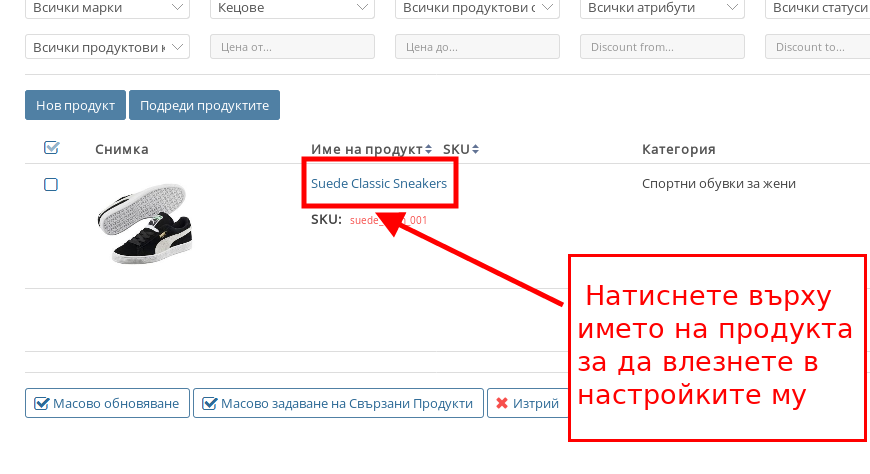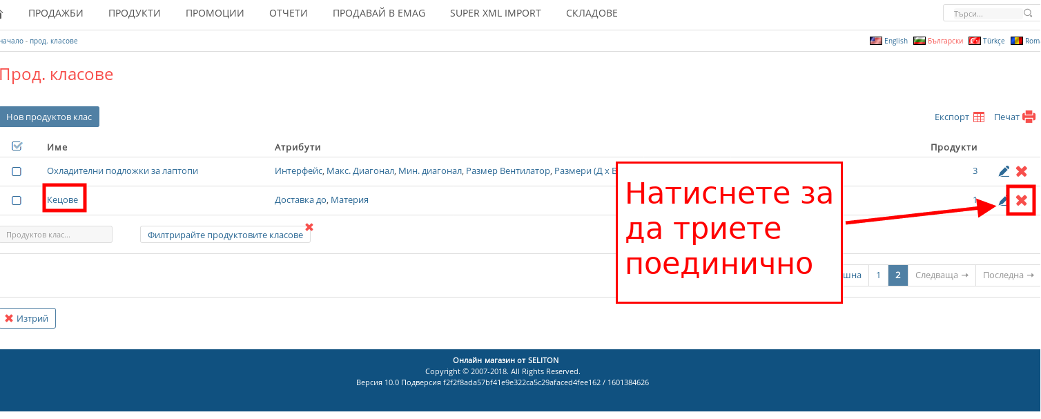 След като знаете как да създадете и редактирате Продуктови класове е време да разберете и как да изтриете Продуктови класове. За целта ще използваме Продуктовия клас “Кецове”.