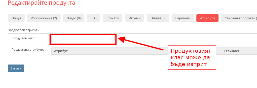 - След като сте вътре в продукта натиснете върху полето “Атрибути”.