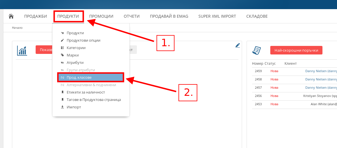 - В меню Продукти, натиснете върху колонката "Продуктови класове (Прод. Класове)".