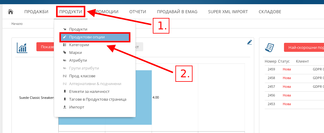 - В меню Продукти натиснете върху подменю “Продуктови опции”.