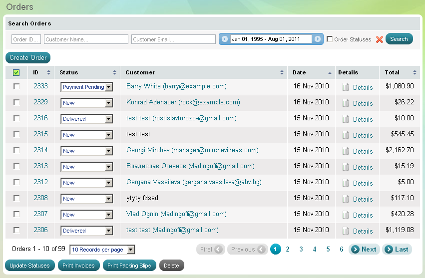- update order statuses to mark up the progress on orders (you can use the 10 predefined statuses in Summer Cart or create your own order statuses)