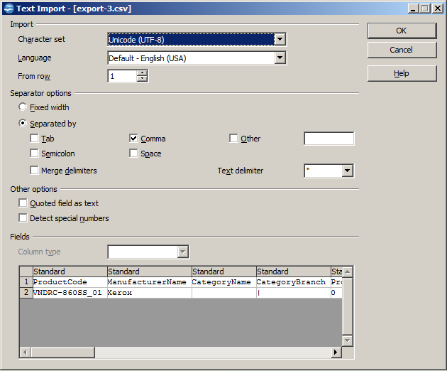 ProductCode - SKU number for the product. This value must be unique because Summer Cart is using this field to identify for which product you will import data. This is the only one filed which is required in the import file.