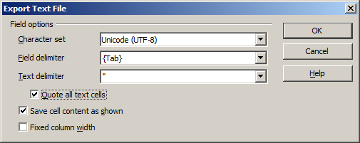Field delimiter - {Tab}