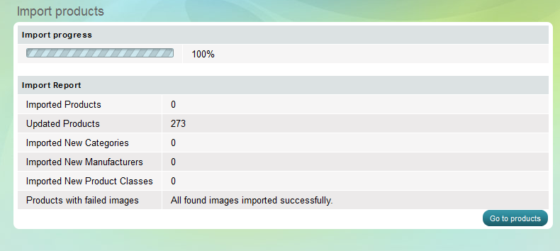 - "Auto-create" - If your store already has manufacturers, categories or product classes and a new one is