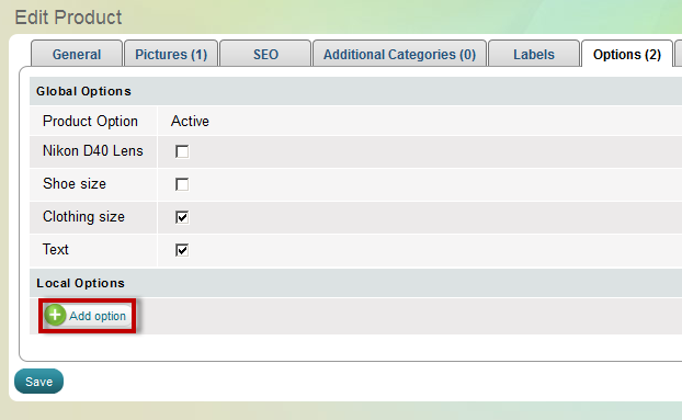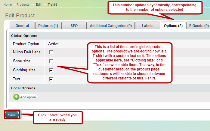 - If you would like to create and assign a group of Local options for this product, you can do it from this page.