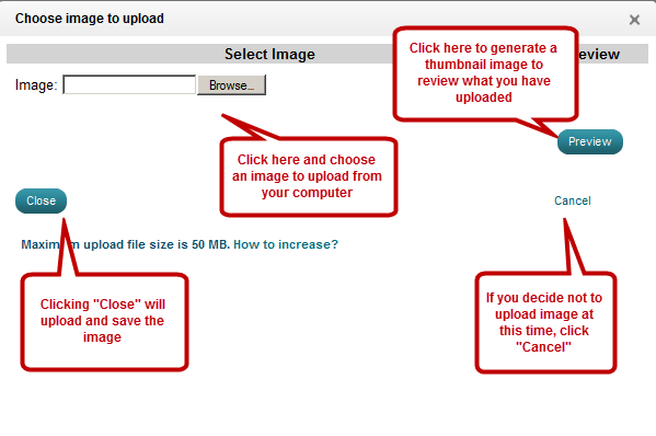 Click Cancel if you decide not to upload an image at this time.