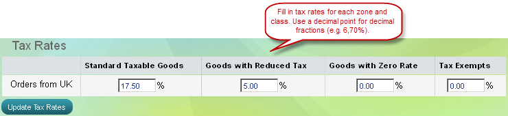 Define tax rates per each tax zone and tax class. If you have one tax zone and one tax class you will set one tax rate.
